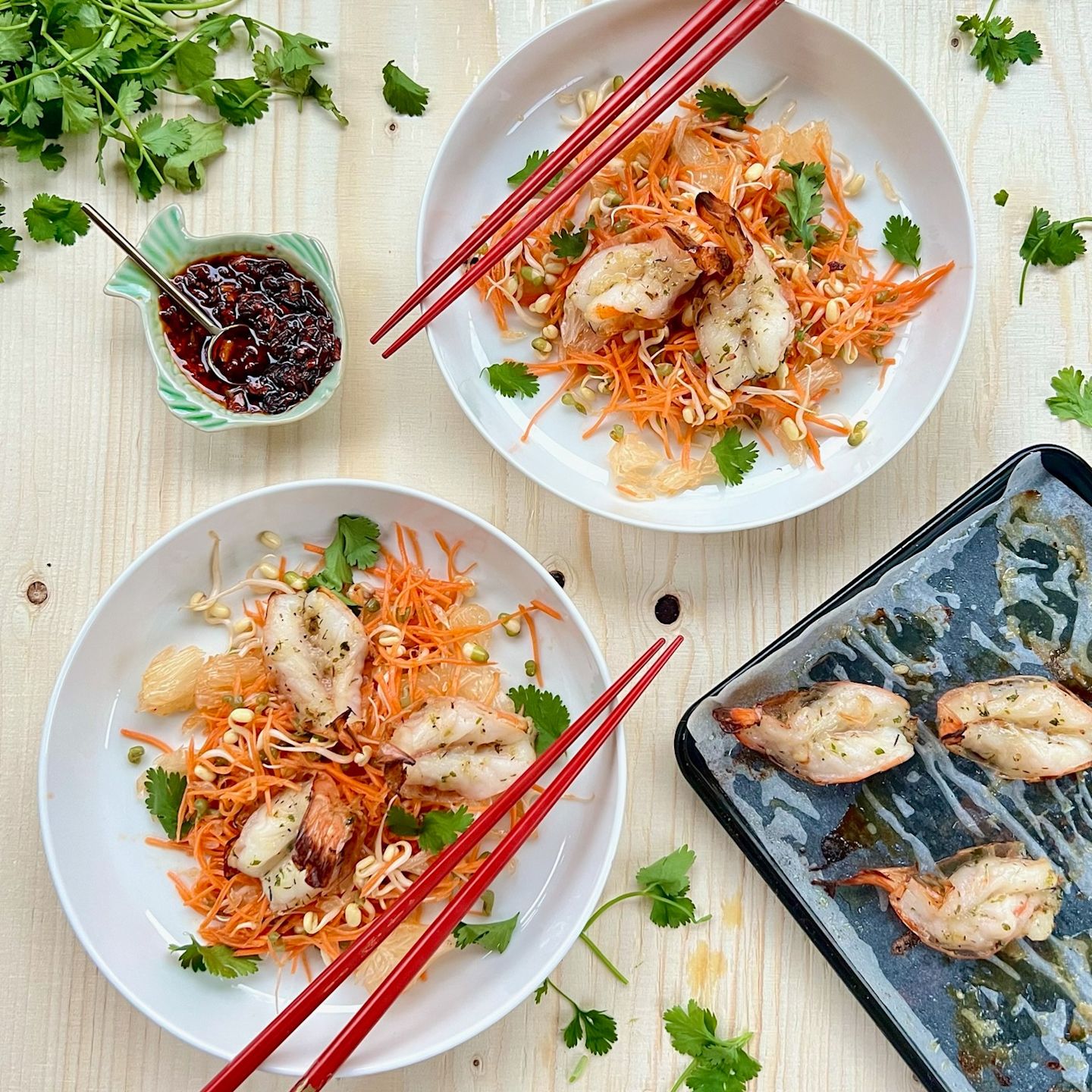 Porgandi-pomelosalat küüslauguste krevettidega