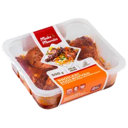 Koostisosad: hakkliha 85% (60% kanahakkliha, 40% seahakkliha), lõhna- ja maitseained, sibul, happesuse regulaator E262, antioksüdant E300, säilitusaine E331