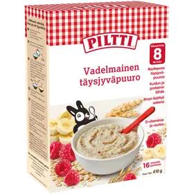 Piltti täisterapuder vaarikaga 8 k, 410 g4,89 €11,93 €/kgVõrdlushind 11,93 €/kgEemalda toode ostukorvist, Piltti täisterapuder vaarikaga 8 k, 410 g, lõplik kogus: 0 toodet0 toodet ostukorvis0 tkLisa toode ostukorvi, Piltti täisterapuder vaarikaga 8 k, 410 g,lõplik kogus: üks toodeSalvesta lemmikuks